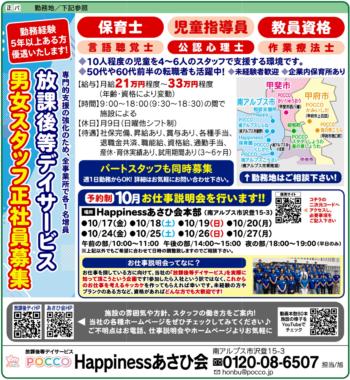 専門的支援の強化のため全8事業所で各1名増加します!